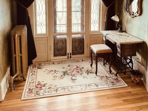 Welcome to the Sunset Room, a charming and romantic retreat at the Gibson Mansion Bed and Breakfast. This delightful room features a beautifully crafted Victorian queen-sized bed, offering a touch of timeless elegance and a cozy haven for a restful night's sleep.